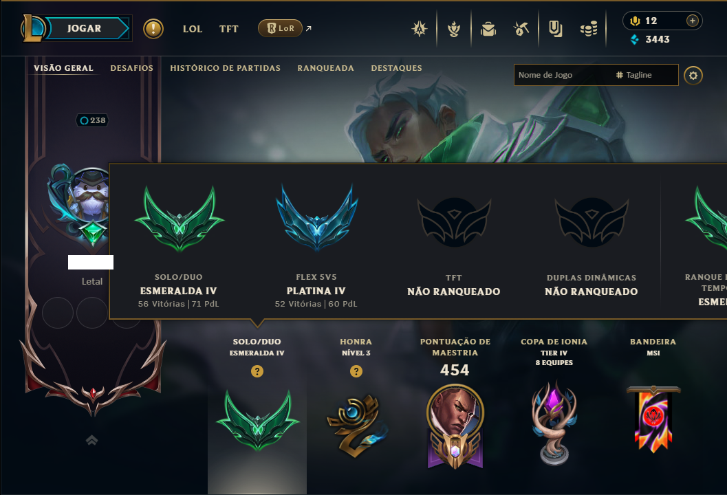 ( MAIN ADC ) - Conta Esmeralda 4 com TODOS os Champs, Maestria 13 de Lucian, 12 de Ekko, 11 de Ezreal, 12 Maestrias acima de 7, 167 Skins, 2 Miticas, 8 Vitoriosas, 35 Cromas, 194 Ícones, 156 Emotes, 1 Fragmento de skin, 3 de Campeão, 1 Reembolsoe Honra 3.