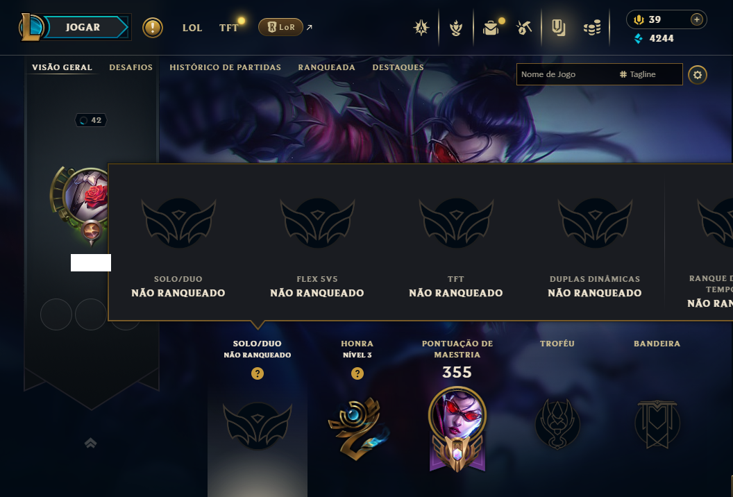 ( ADC / MID / JG ) - Conta Unranked com 140 Champs, Maestria 26 de Vayne, 14 de Jinx, 10 de Yasuo, 10 Maestrias acima de 7, 140 Skins, 2 Ultimates, 4 Vitoriosas, 5 Cromas, 127 Ícones, 3 Reembolsos e Honra 3.